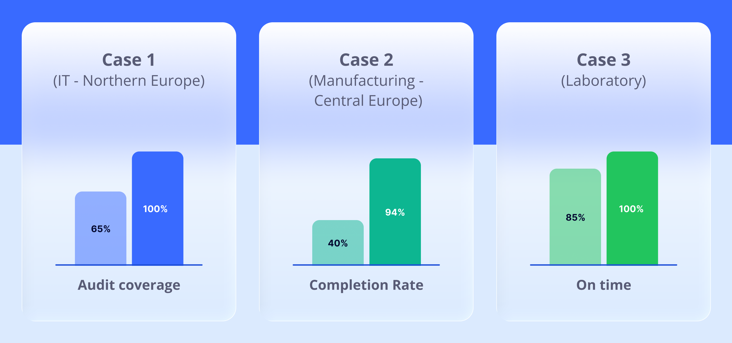 - Non-conformities detected faster because each area is audited more frequently