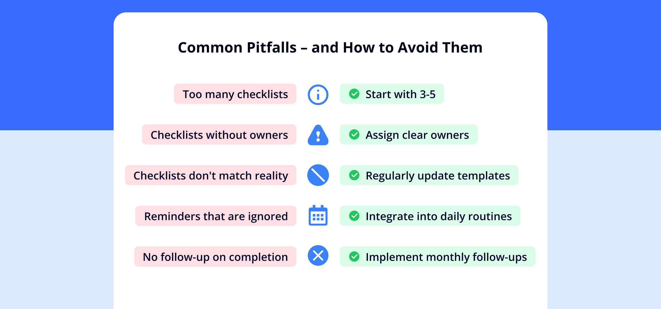Pitfall 5: No Follow-up on Checklist Completion