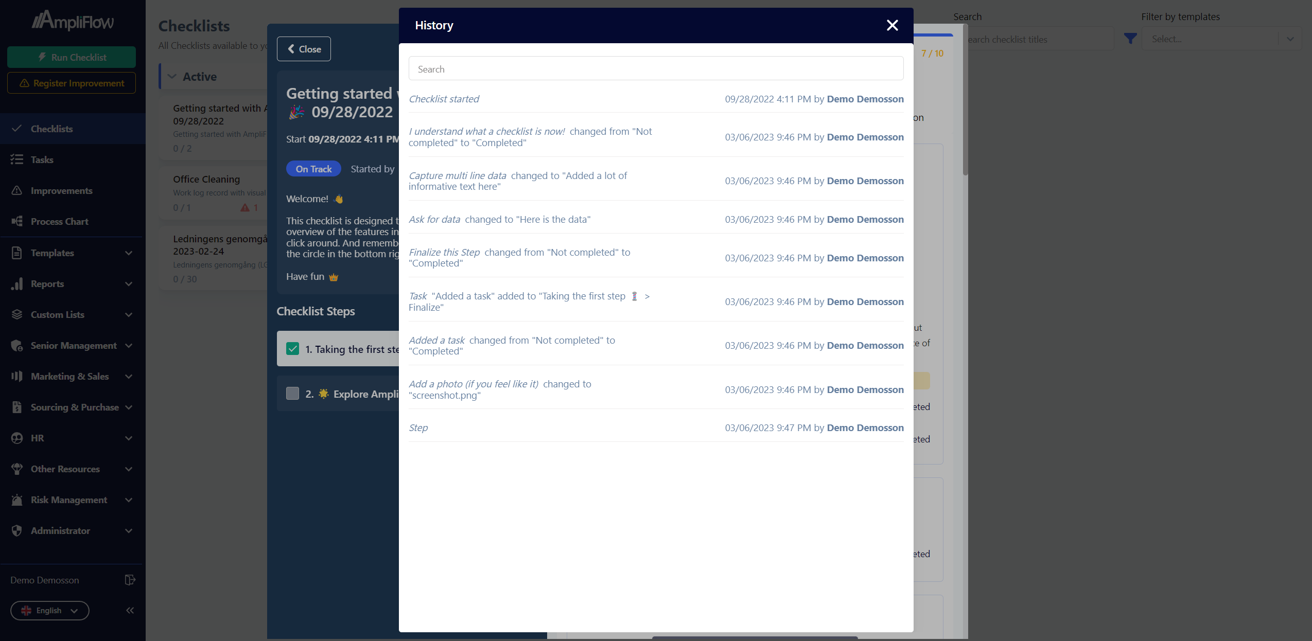Having a history of completed checklist and improvement activities is valuable because it allows you to look back and see what activities have been completed, by whom and when.